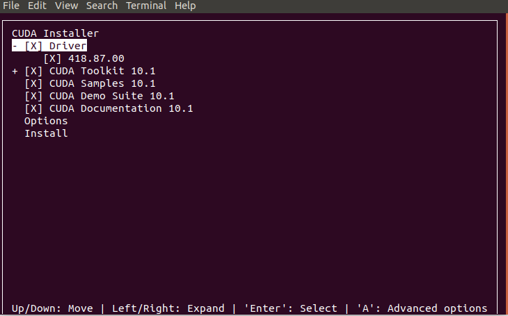 When seeing this window, if you already have a driver installed for your GPU, unselect Driver because there will be a conflict. If not, keep default selections.