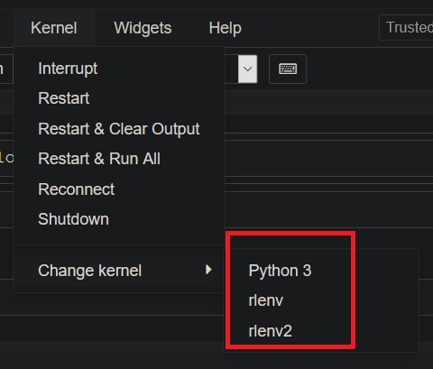 If you haven’t create a Jupyter Notebook file, just open Jupyter Notebook and create one and specify the env while creating (seems you can not specify another kernel after the creation in jupyter notebook, but such function is supported in vs code).